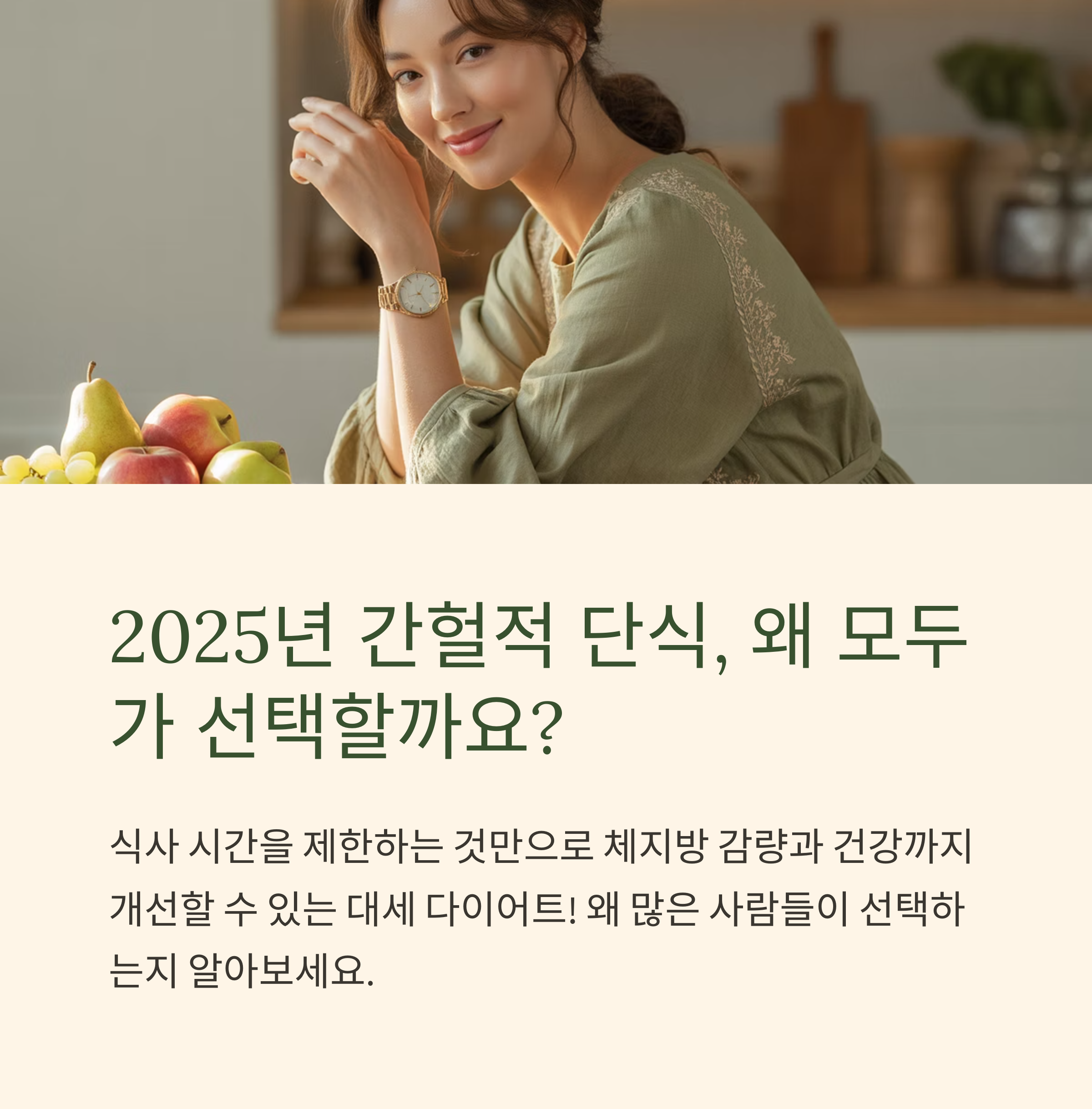 간헐적 단식에 대해 알아보시는 여러분, 반갑습니다. 언제나네의 블로그에 오신 것을 환영합니다! 오늘은 2025년 현재, 전 세계적으로 인기 있는 다이어트 방법인 간헐적 단식의 성공 비법을 구체적으로 안내해 드리겠습니다. 믿을 만한 연구와 데이터에 기반하여 체지방 감량과 건강 지표 개선을 이루는 방법을 함께 탐구하며, 성공적인 다이어트를 완성하는 열쇠를 찾아보겠습니다. 이 글이 여러분의 다이어트 여정에 유익한 길잡이가 되길 바랍니다.