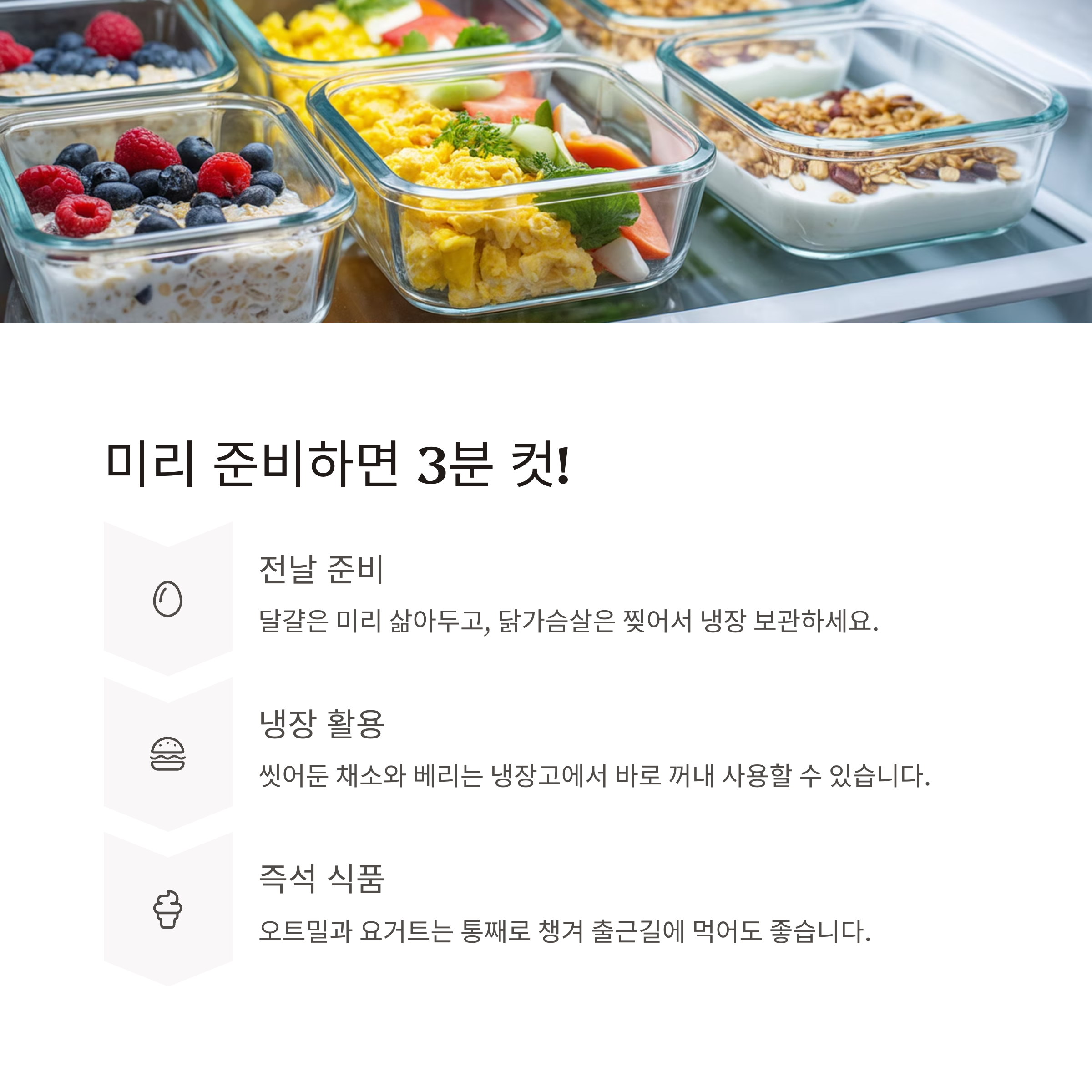 - 아침 메뉴를 전날 미리 계획하여 시간 절약을 해보세요