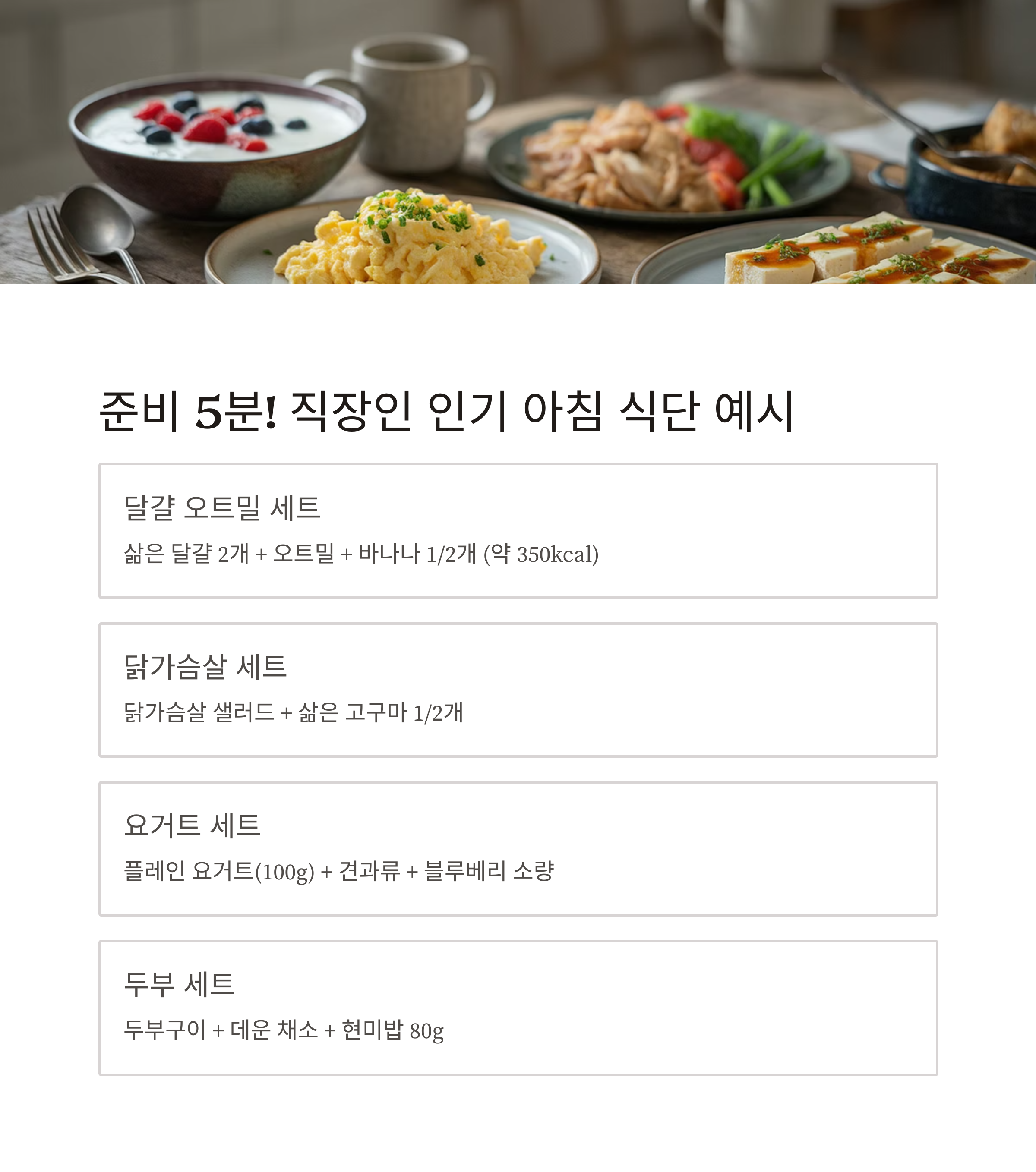 2. 실전 아침 식단 구성(2025 최신 사례)