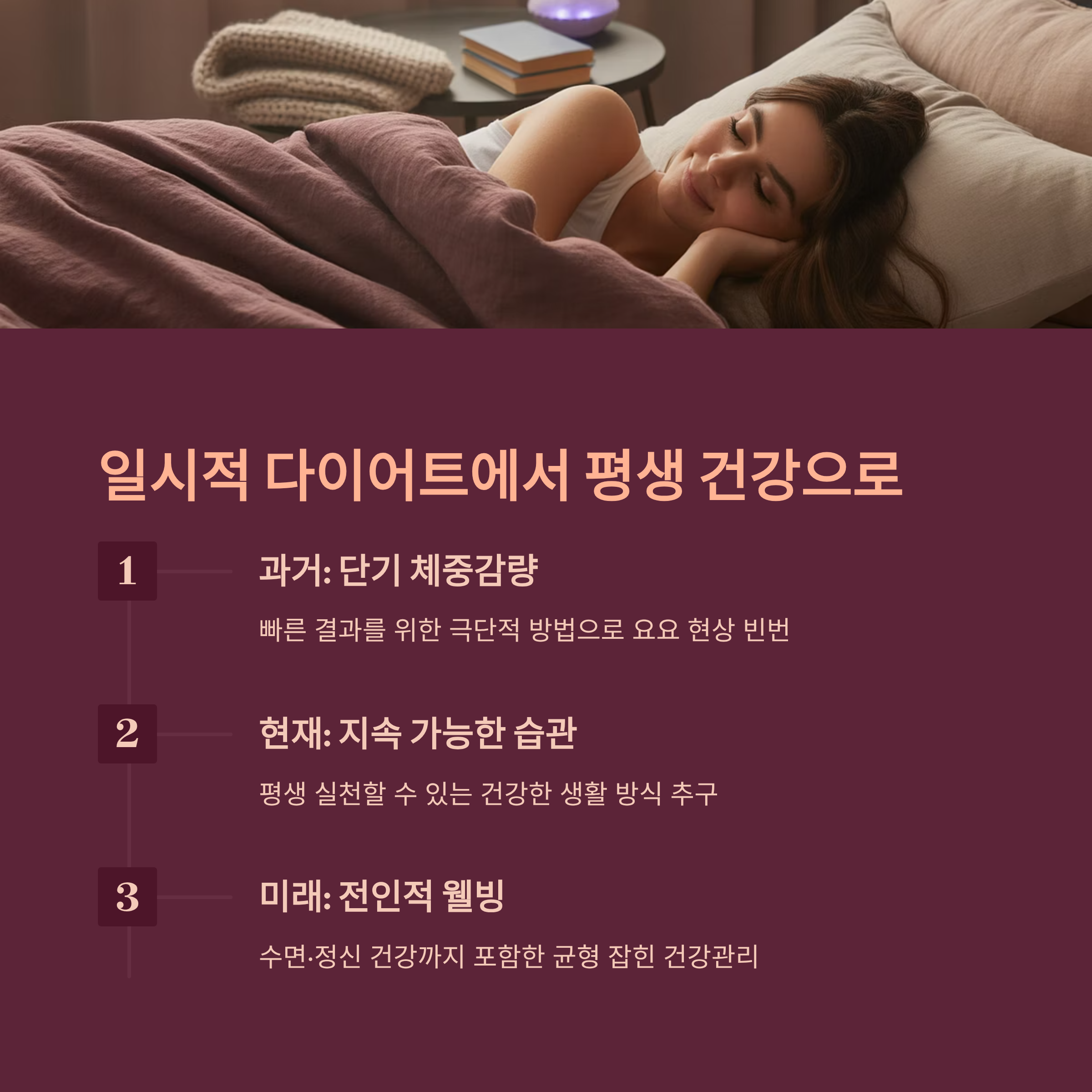 단순히 외형적인 변화를 넘어 정신 건강과 수면 관리까지 한번에 살필 수 있어야 해요! 이런 점들에서 다이어트가 정말
