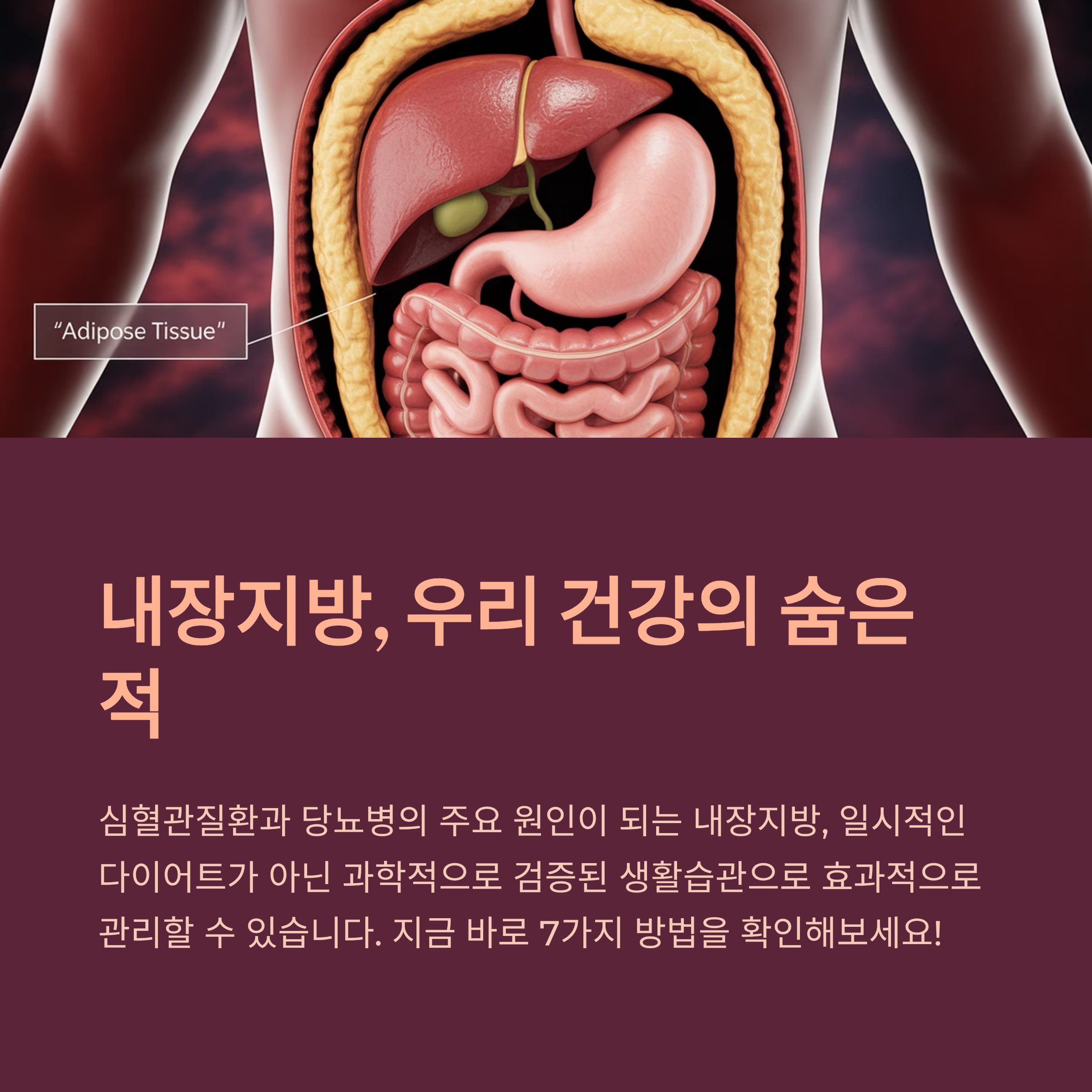 안녕하세요! 몸과 마음의 건강을 중시하는 시대에 살고 있는 우리가 해야 할 중요한 일 중 하나, 바로 내장지방의 관리죠. 요즘 저도 여러가지 건강관리에 관심을 갖고 있는데, 내장지방 이야기를 들으면 꼭 저 자신을 돌아보게 되네요. 여러분께서는 어떻게 관리하고 계신가요? 걱정 마세요! 오늘은 내장지방을 없애는 생활습관 7가지를 공유해드릴게요. 인생에서
