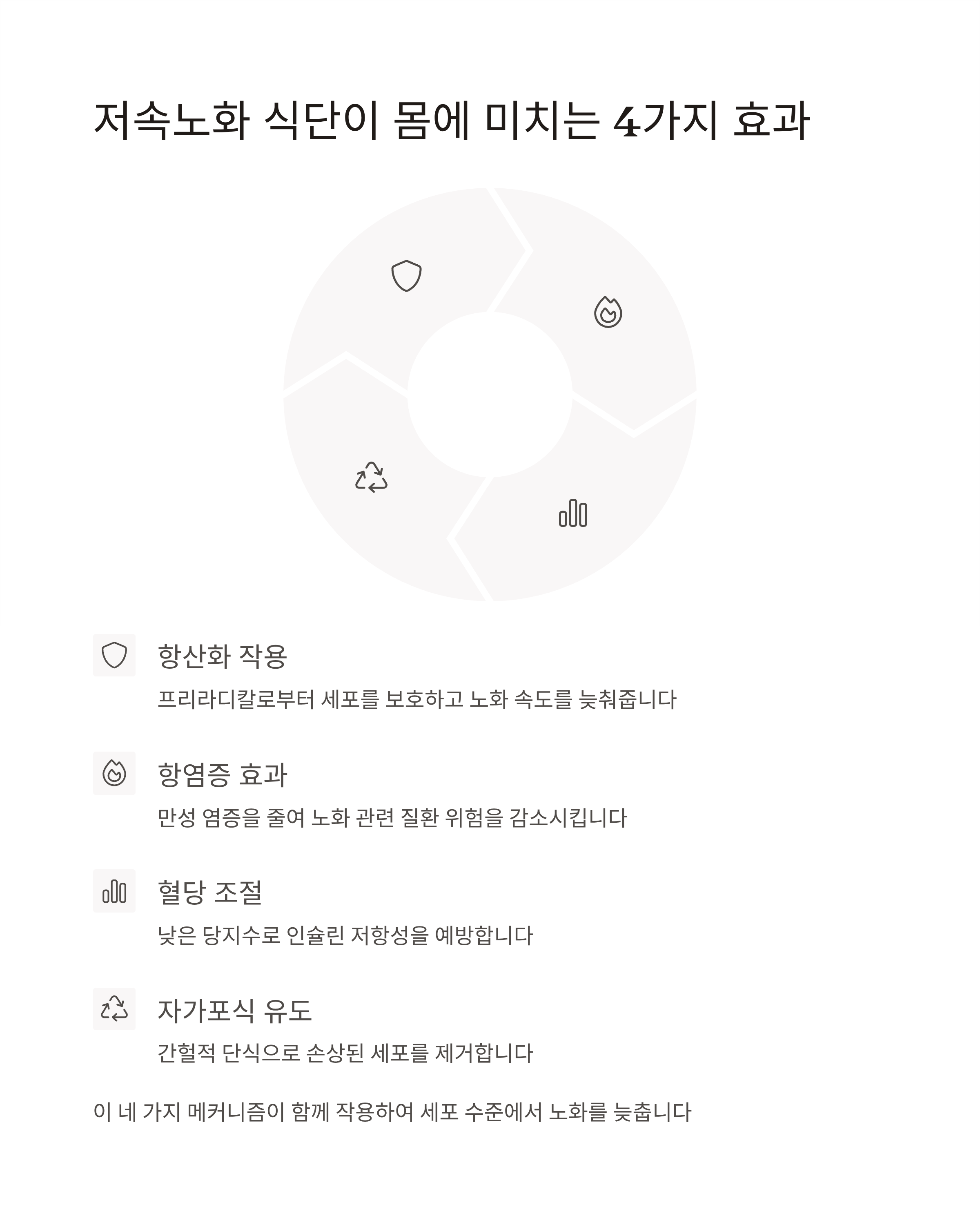 | 16:8 단식 | 16시간 금식, 8시간 식사 | 자가포식 활성화 |