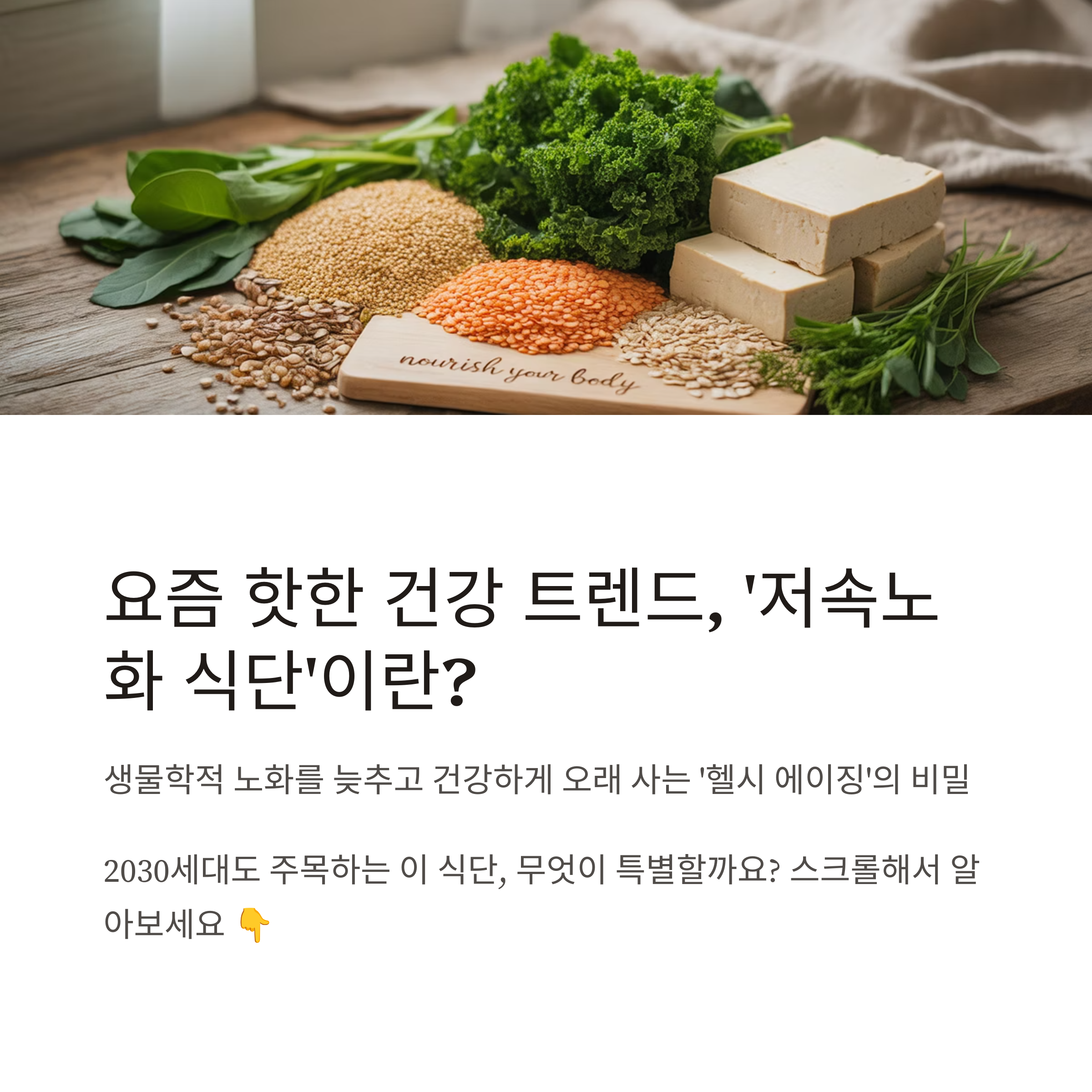 건강을 지키고 노화의 속도를 늦추는 방법 중 하나로, 저속노화 식단이 주목받고 있습니다. 한입의결심으로 당장 시작해보세요! 건강한 식습관만으로도 얼마나 큰 변화를 가져올 수 있는지 소개해드립니다. 여러분도 함께 도전해보세요.