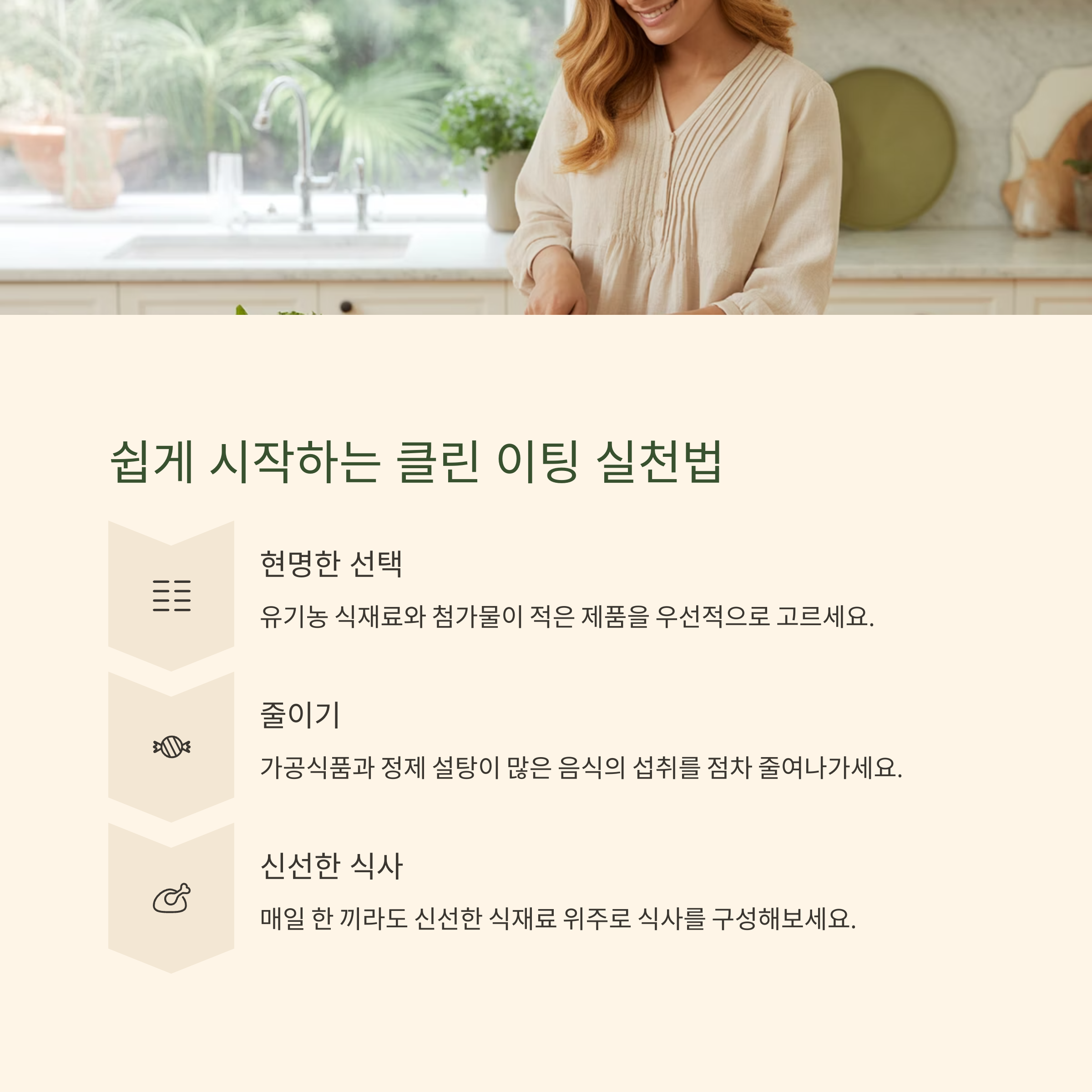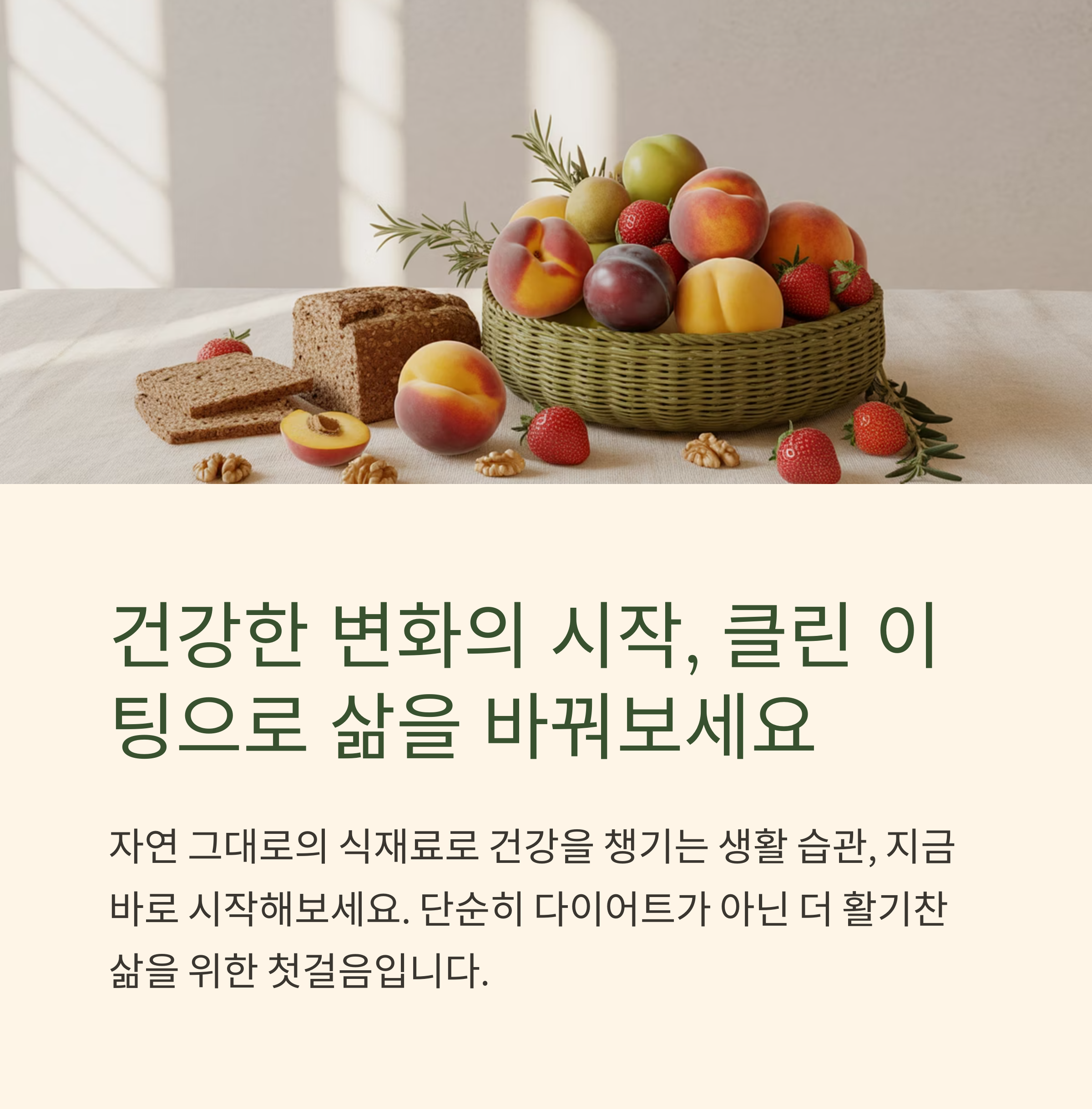 초보자들은 클린 이팅을 천천히 시작하는 것이 좋습니다. 슈퍼푸드를 작은 양씩 시험해보고, 인공 첨가물이 적은 제품을 우선적으로 선택하세요. 물을 충분히 섭취하고 가공식품을 줄이는 습관을 들이면서 서서히 자연식으로 이행하면 지속 가능한 생활 습관으로 자리잡을 수 있습니다.